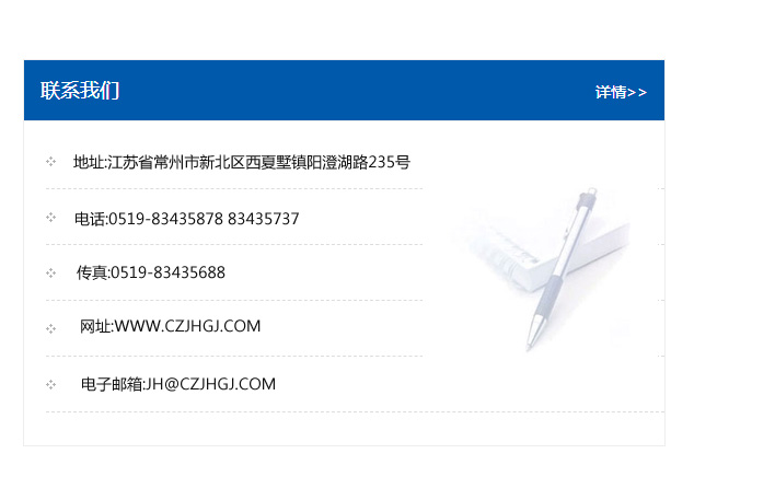 傳真:0519-83435688    郵編:213135    網址:WWW.czjhgj_com.wavhigh.com    電子郵箱:JH@czjhgj_com.wavhigh.com